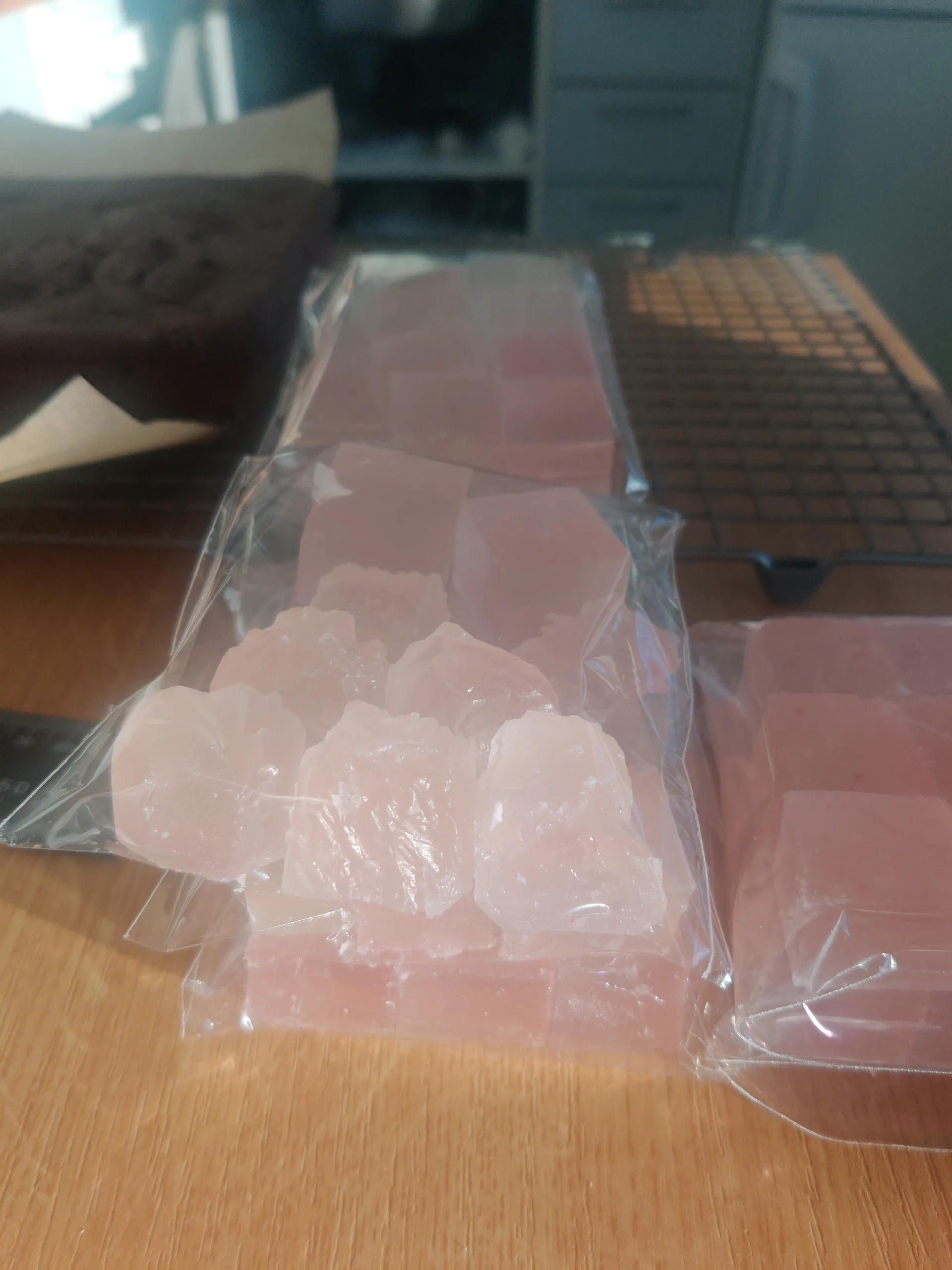 Kuivaa hyytelöpalat, esim. vuoratulla pellillä, huoneenlämmössä 2-3 päivää, kunnes kova kuori muodostuu.